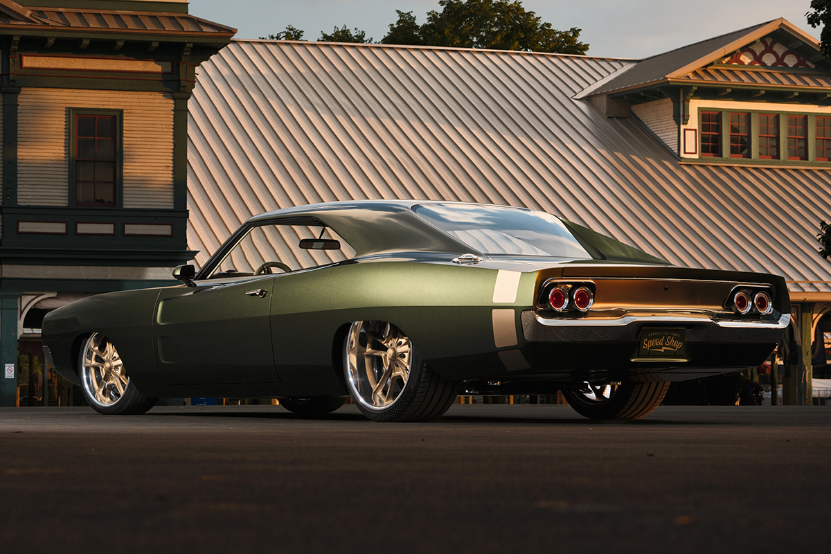 Built by Classic Car Studio in St. Louis, Missouri, Ed’s Charger raises the bar for modern street machines with a perfect balance of innovation and modern flare with iconic Dodge styling. The Drip rails were smoothed, wheel openings were altered to match the modified wheel base of the Roadster Shop chassis and modern, flush mounted glass installed.